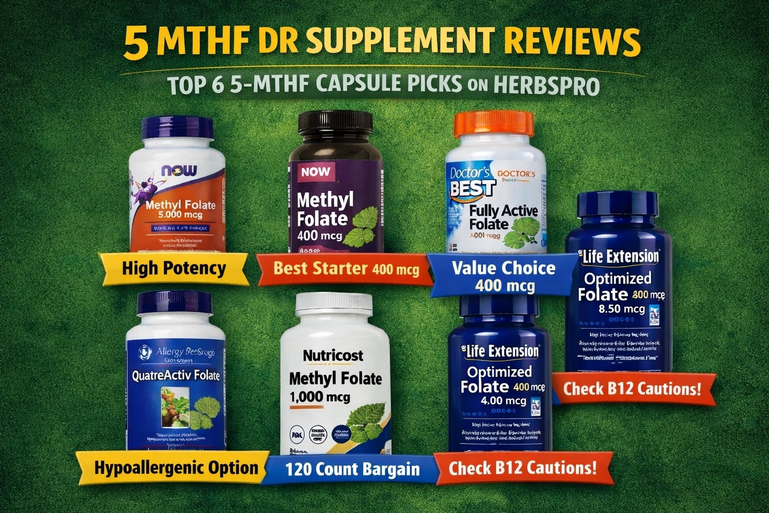This buyer’s guide breaks down six of the most searched 5-MTHF capsule options available on HerbsPro so you can compare dose, value, and formulation with clarity.