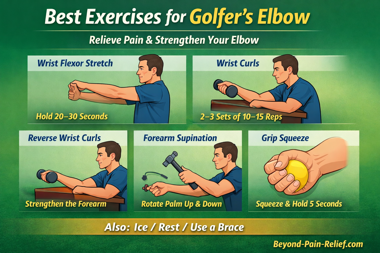 Best exercises for golfers elbow are often one of the most effective and natural ways to reduce pain, restore movement, and rebuild strength over time. If you’ve been dealing with discomfort on the inside of your elbow—especially when gripping, lifting, or bending your arm—you’re not alone. Golfer’s elbow (medial epicondylitis) is a common overuse condition, but with the right approach, it can be managed successfully.