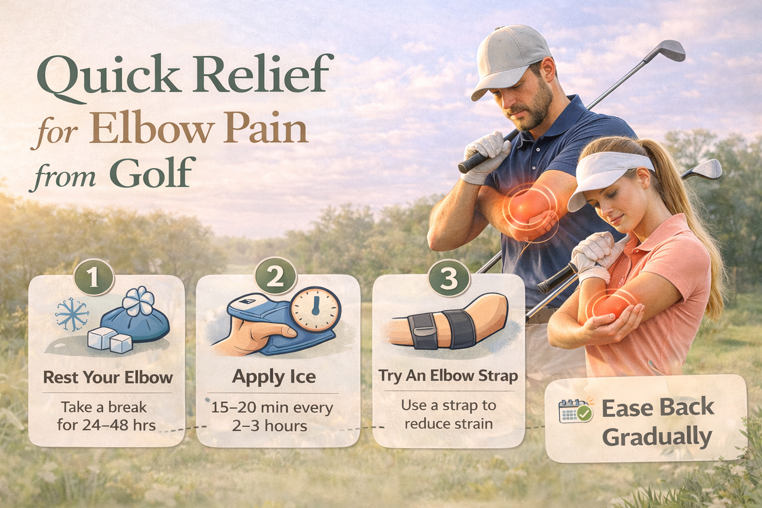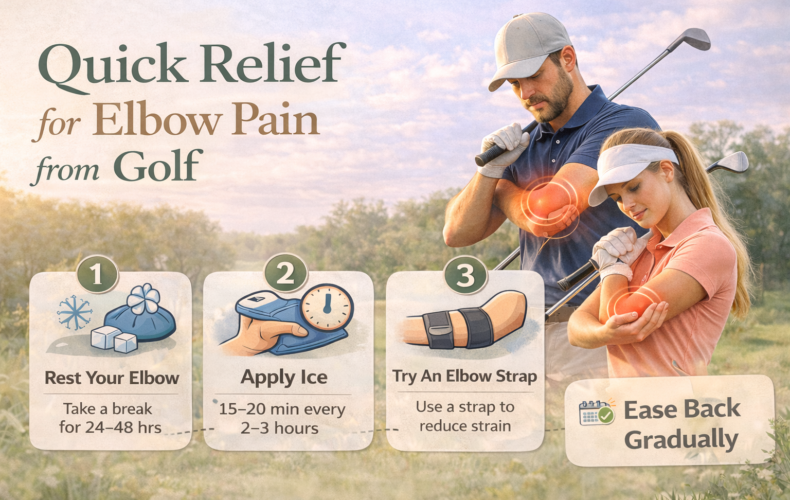Quick relief for elbow pain from golf often comes down to a mix of immediate care, smart movement, and a few well-chosen supportive tools.
