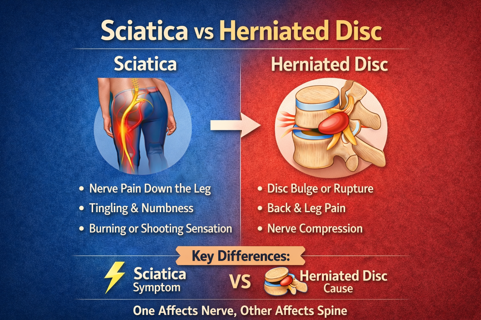 Sciatica vs herniated disc is a common comparison people search for when trying to understand back and leg pain.