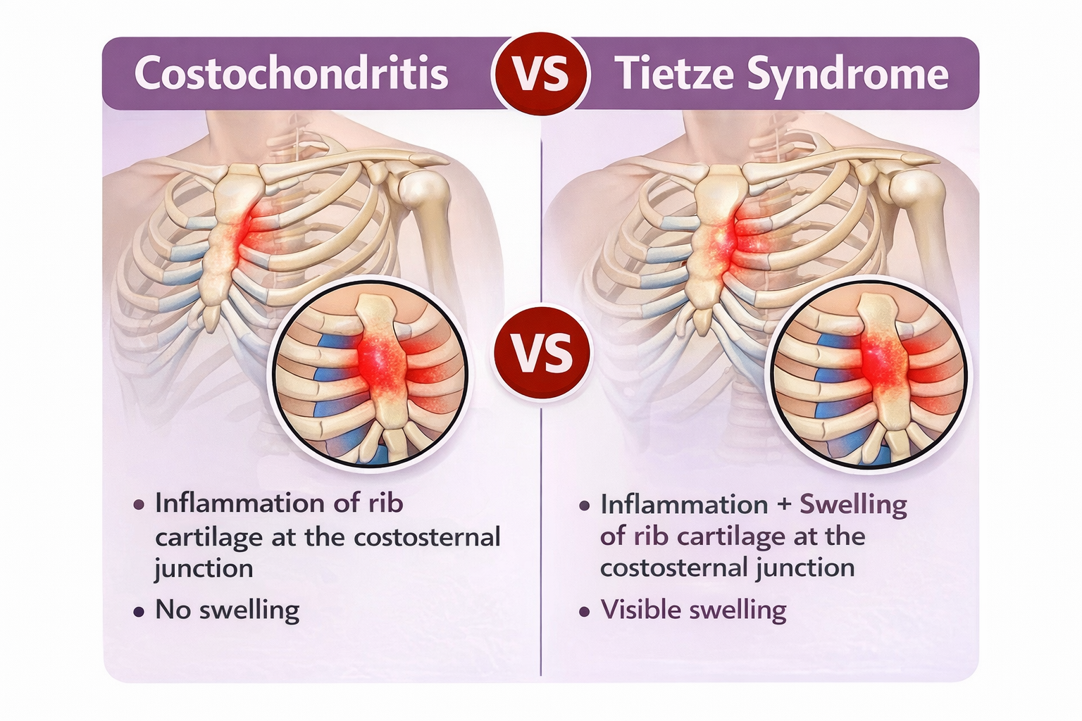 Understanding Tietze Syndrome vs costochondritis becomes easier when the core differences are clearly laid out: